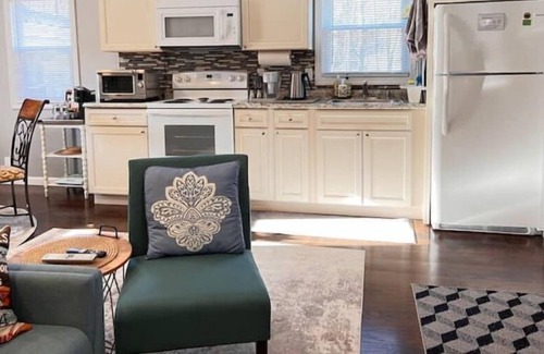The studio offers 1 queen size bed, 50 inch "smart" TV, wifi, washer/dryer, fully stocked kitchen, full-size refrigerator, electric stove, microwave, toaster-oven, Keurig coffee maker, electric kettle.