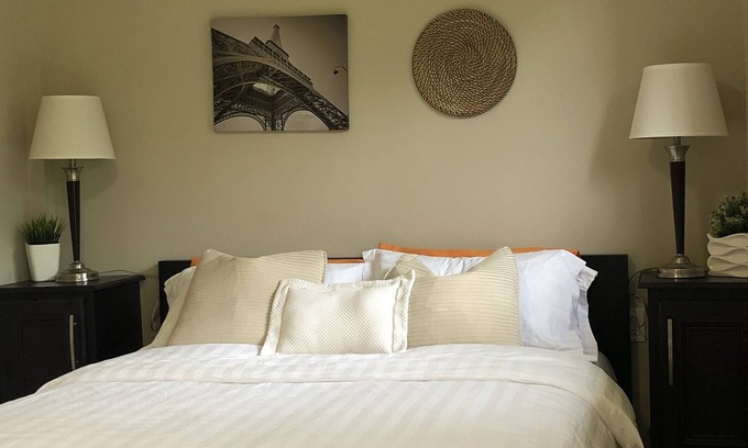 Exquisite renovated private bedroom, kitchenette, full washroom are located at ground level of a detached house in a quiet and beautiful neighbourhood. It has its own private backyard entrance, carpet flooring, double French door looking out to the nice backyard view.