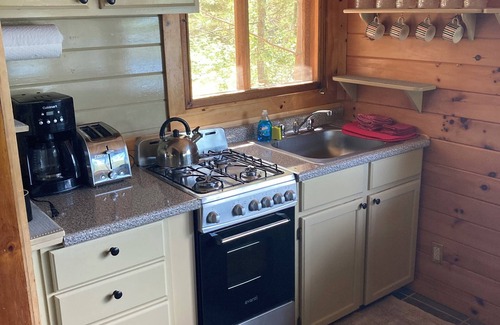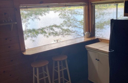 Cozy wainscot interior with comforts for a couple, or two adults and one infant or very small child (under 5). Cottage has one bedroom with a queen bed, a living room with a sofa bed and two chairs. There is a breakfast bar and a table that seats four. The kitchen has a gas stove, oven, refrigerator, microwave, toaster and coffee maker. The location is the highlight, in private vacation enclave (historic resort property) on the shore of Long Lake in the heart of the Adirondack Mountains. Somewhat steep path to the shared beach. Close to hiking trails and great fishing right off the dock. Only 7 miles from the famous Adirondack Museum-Adirondack Experience and 25 minutes from the spectacular Wild Center and Wild Walk at Tupper Lake.