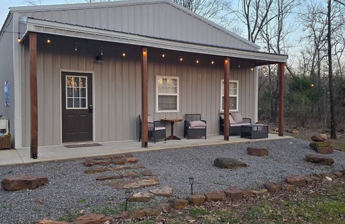 Built in 2021. Keep it simple at this peaceful, centrally-located get-away. Located 2.3 miles from Cookson Bend Marina and Carlisle Cove boat ramp; 1.3 miles from Nautical Adventures scuba shop. Located 25 minutes from the upper Illinois River. Plenty of space to park your boat or trailer. This space is 300 sqft stocked with coffee, mini fridge, and microwave. High-speed internet. 2 queen beds. Full private bathroom.