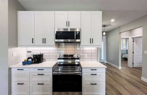 Step into a modern, open-concept space designed for relaxation and connection. The kitchen, a chef's dream, boasts sleek, modern appliances and a large island—perfect for prepping meals or gathering with loved ones.