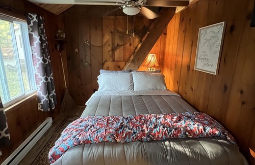 Blending timeless rustic charm with modern comforts, the cottage's main floor comfortably sleeps 4 with a cozy queen bed and a full-size pull-out sleeper sofa. The upstairs loft, accessible via a quaint loft ladder, adds to the adventure with its low ceiling and accommodates up to 2 additional guests with a queen bed. It's an ideal, cozy space for those who cherish a snug retreat after a day of adrenaline-fueled outdoor activities.