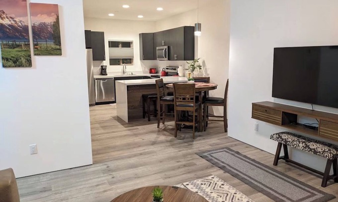 Nestled nearly equal distance between the two local ski resorts, our condo is perfect for skiers and snowboarders aiming to conquer Grand Targhee and Jackson Hole Mountain Resort. Conveniently, the START Bus to Jackson and Targhee Shuttle bus stops are within walking distance.