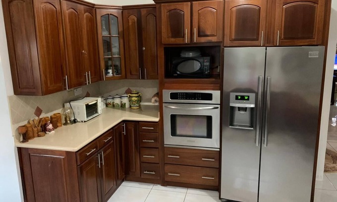 Large family spaces, en-suite rooms, modern kitchen, garage, TV, WiFi, and an on-site caretaker. All this in a holiday rental home located in the cool runway close to Ocho Rios.