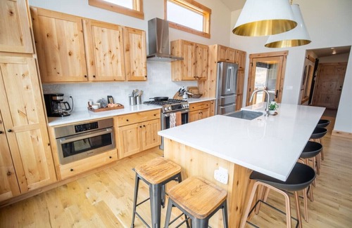 Step outside to your private deck to soak in fresh mountain air and watch for local wildlife like moose, foxes, and bears roaming the valley below. After a day of adventure, unwind in the outdoor hot tub or gather around the firepit for cocktails under the stars.