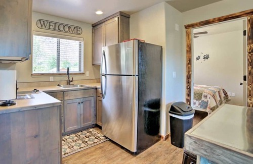 Angel Rock Rentals of Moab – Unit 2 is a cozy 2-bedroom, 1-bath modern rustic townhouse just 4 miles from downtown Moab and 9 miles from Arches National Park. Enjoy a queen bed, full-over-full bunk bed, a fully equipped kitchen, BBQ grill, garage, and dog-friendly comfort. Relax on the balcony with stunning Moab Valley sunsets.