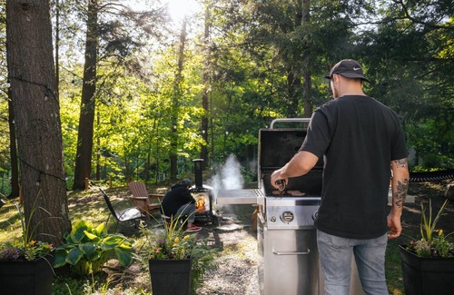 Charming 3-star, 4-season chalet, fully equipped (bedding, dishes, kitchen equipment) on a lot in a wooded environment. Close to the city of Magog, its restaurants and shops, and near the ski slopes (cross-country and downhill). Snowshoeing and hiking trails, beaches and many other activities are nearby. Very close to the beach of Lake Stuckley and 10 minutes from Lake Memphremagog. Chalet with indoor and outdoor fireplaces and equipment, you will be charmed!