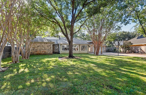 Discover the beauty of Fort Worth from this 4-bedroom house. Nestled in a safe, tranquil neighborhood, on a wooded lot in Candleridge adjacent to French Lake Park. Our wonderful property offers a serene retreat for guests. With 2 queen bed and 2 king bed, our awesome bedrooms ensure a comfortable stay. Immerse yourself in the cozy ambiance of our home, complete with central AC and heating, washer and dryer, iron, WiFi, microwave, cooktop, double ovens, refrigerator with icemaker. Refresh after a long day with a soak in the jacuzzi garden tub. The 3 bathrooms provide luxurious convenience for everyone. Property features a alley drive in entrance with electric gate and a huge privacy fenced backyard. Pet friendly. Enjoy all that Fort Worth has to offer when you stay at our newly remodeled and updated home.
