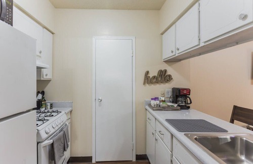 Our 399 sq ft apartment features an HDTV with Roku and high-speed WiFi, a studio with a queen-size bed and quality sheets and pillows, and a bathroom with a shower, hair dryer, iron and ironing board, and bath towels and mats. Relax in the community lounge and dining area or take advantage of the 24-hour check-in and business center. We follow the CDC's guidelines for cleaning and disinfection, and the common areas have 24/7 surveillance. Please note that the building's cooling system is turned on until October/November and individual units cannot run heat during this time. Enjoy your stay in Memphis with us!
