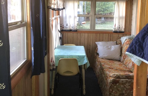 Our resort features an affordable family vacation cabin on an acre of land with 180’ of frontage on the north shore of beautiful Big Platte Lake. The cabin has two double beds and a bunk bed, a kitchen with all cooking utensils and modern bathroom. The cabin also has a charcoal grill and picnic table. Bring your own linens and towels. We have three rental cottages, each with it’s own VRBO page, so please check the calendars for each unit for availability. We also have two family cottages on the property.