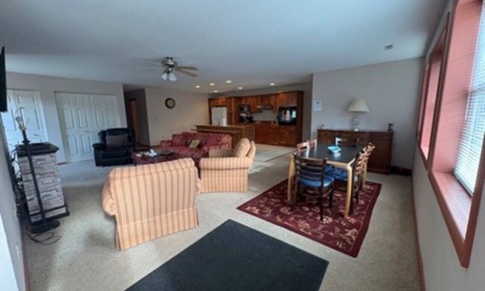 Enjoy a three bedroom, two bath apt with an open area living room and kitchen. Enjoy skiing at Snowshoe during the day while returning to your own spacious area for a family dinner before returning to the slopes or to the trails.