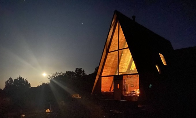 Remote/Off Grid Aframe on 100 acres between Sunset Crater Volcano and Wupatki National Monuments. 75 miles to Grand Canyon. Borders National Forest land. Amazing views of Roden Crater, San Francisco Peaks, Hopi Mesas, and Navajo Reservation. Peaceful house camping in Half Moon Valley. An escape from city life. No cell phone service, Wifi, or television. No street lights, few neighbors. Reconnect with yourself, family, friends.