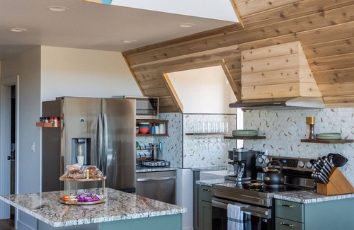 Step onto the expansive 1,000 sq ft deck and breathe in the crisp mountain air as you take in panoramic views. Unwind in the 7-person deep hot tub, perfect after a day of exploring. Cozy up by the firepit, lounge on comfortable furniture, play yard games, or gather everyone for a BBQ under the big sky. As night falls, use the telescope on the deck to take in the stars from one of the best stargazing spots in the world.