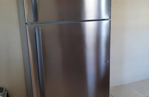 The kitchen features a 6 burner self lighting, stainless steel stove with a oven for all your baking needs. It's also equipped with a Microwave oven, a blender, a kettle, double sink with hot and Coldwater, and a refrigerator.
