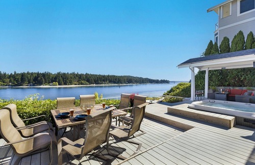 Fabulous Beach House getaway. You’ll love the amazing waterfront location of this beautiful, comfortable home with beach access, gorgeous views and outdoor activities. Great for families and friends. Walk on the sandy beach or relax all day on the deck with covered seating and a hot tub. Nearby Clearwater casino for fun and entertainment; wine tasting and shopping on Bainbridge island or visit the waterfront viking village of Poulsbo for strolling, shopping and dining. Close to the ferries.