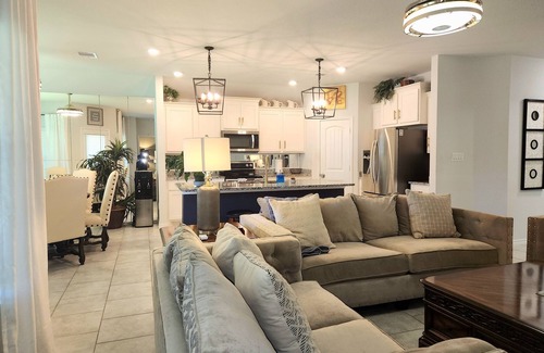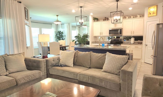 You will have access to the entire house to enjoy, excluding the garage. The open concept kitchen, dining, and living area makes it perfect to gather and celebrate the special occasion! Get together around the beautiful wood dining table for game night or cozy on up on the massive, comfy couches in the living room or take the party outside in the private backyard for burgers and steaks on the grill!