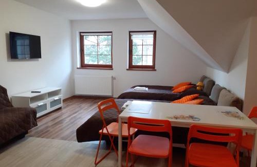 Agroturystyka Aura offers accommodations in Kostrzyca, 4.2 miles from Western City and 6.9 miles from Wang Church. This homestay features free private parking and private check-in and check-out. Guests can make use of the sun terrace or the outdoor fireplace, or enjoy views of the mountain and garden. The units come with tiled floors and feature a fully equipped kitchenette with a microwave, a flat-screen TV with cable channels, and a private bathroom with shower and a hair dryer. A fridge, a stovetop, and kitchenware are also offered, as well as a kettle. At the homestay, units have bed linen and towels. For those times when you'd rather not eat out, you can cook on the barbecue. Outdoor play equipment is also available at the homestay, while guests can also relax in the garden. Dinopark is 17 miles from Agroturystyka Aura, while Szklarska Poreba Bus Station is 18 miles from the property. Copernicus Wrocław Airport is 64 miles away.