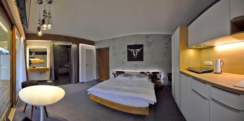 AHA Jasná Apartmány in Liptovský Mikuláš provides accommodations with a garden and barbecue facilities. This property offers access to table tennis, free private parking, and free Wifi. Guests can use the hot tub and open-air bath, or enjoy garden views. All units include a seating area, a flat-screen TV with cable channels, a fully equipped kitchen, and a private bathroom, while some rooms feature a terrace or a balcony. A microwave, a toaster, and fridge are also provided, as well as a kettle. At the apartment complex, all units are equipped with bed linen and towels. Buffet and full English/Irish breakfast options with warm dishes, local specialities, and fresh pastries are available. For guests with children, the apartment provides outdoor play equipment. Skiing and cycling can be enjoyed nearby, while a ski equipment rental service, a ski pass sales point and ski storage space, are also available on-site. Demanovská Ice Cave is 3.1 miles from AHA Jasná Apartmány, while Aquapark Tatralandia is 4.7 miles away. Poprad-Tatry Airport is 34 miles from the property.