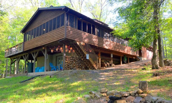 AhhRiverwood - Stunning River View Log Cabin + 21 ac & EV CHR is located in Great Cacapon. AhhRiverwood - Stunning River View Log Cabin + 21 ac & EV CHR provides accommodation, featuring Air Conditioner, Parking, TV, among other amenities. This Cabin features Air Conditioner, Parking, TV, to make your stay a comfortable one.