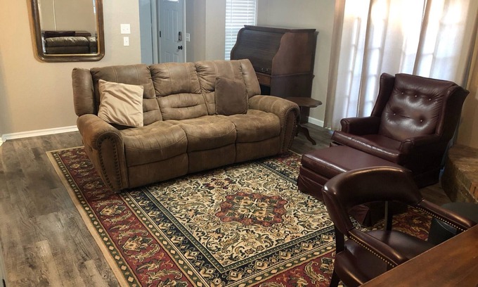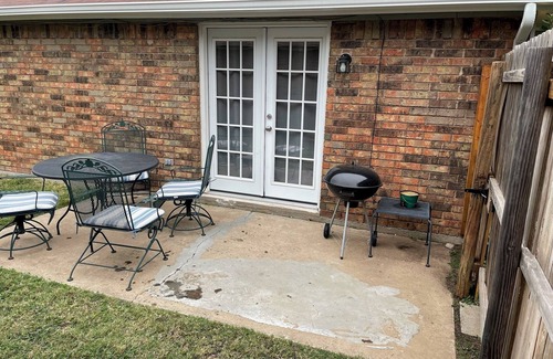 Located in Moore, this house is like staying at your favorite aunt's home! The 2 car garage is for your use during your stay (also No smoking, or vaping), Comfortable 3 queen beds spread across 3 bedrooms, guests will have a wonderful night's sleep. The 2 bathrooms are equipped with tub & shower, primary bath in the bedroom is shower. Central Heat and Air, Kitchen has all appliances, gas cook stove, dishwasher, Filtered, great drinking water at the kitchen sink with a reverse osmosis system works with the ice from the Refrigerator, too! A full size washer and dryer are there for your use, also. Good, fast WiFi, Small privacy fenced yard with patio and outdoor furniture. We hope you'll enjoy your stay at our house. Smart TV's in 2 of the bedrooms, and a large screen smart TV in the living room.