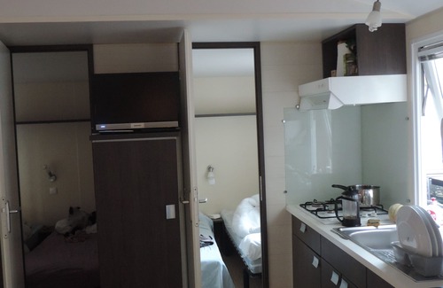 32 m² mobile homes for 6 people including 3 separate bedrooms from the living room:
