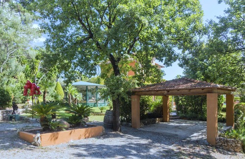 This characteristic and imposing villa (built in 1900) is located approx. 3 km from the friendly seaside resort of Fréjus. This town has a beautiful harbor, extensive sandy beaches, many restaurants, shops and various sights dating back to Roman times, which are worth seeing. This magnificent villa is located about 4 km from the sea and is surrounded by a large superb garden with among other palm trees and flowers. There are different terraces with garden furniture and barbecue, one with a friendly and shaded pergola. Your privacy is assured in this garden by the high greenery. In addition you have a large lawn and a fenced POOL (18x7m) with deckchairs. In the garden there is an arbor with summer kitchen and barbecue. The house is particularly suitable for families with young children.