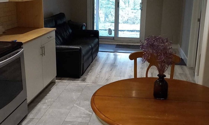 Airy, spacious, nature facing walk-out suite is located in Pickering. Airy, spacious, nature facing walk-out suite provides accommodation, featuring Pet Friendly, Balcony/Terrace, Bedding/Linens, among other amenities. This Apartment features Pet Friendly, Balcony/Terrace, Bedding/Linens, to make your stay a comfortable one.