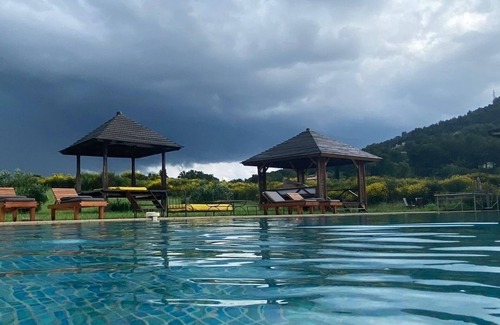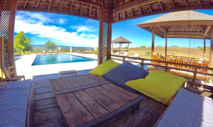 Paillotes, pool house, sunbeds, Balinese atmosphere
