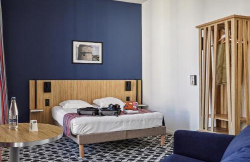Located in Rezé, 4 miles from Bouffay Area, Akena Nantes Rezé Aéroport has accommodations with a shared lounge, free private parking, a terrace and a bar. This 3-star hotel offers room service, a 24-hour front desk and free WiFi. Guests can have a drink at the snack bar. At the hotel, rooms are equipped with a desk. Complete with a private bathroom equipped with a shower and a hairdryer, the rooms at Akena Nantes Rezé Aéroport have a flat-screen TV and air conditioning, and some rooms contain a seating area. All guest rooms have a closet. The accommodation offers a buffet or continental breakfast. Castle of the Dukes of Brittany is 4.3 miles from Akena Nantes Rezé Aéroport, while Le Lieu Unique is 4.3 miles from the property. Nantes Atlantique Airport is 3.7 miles away.