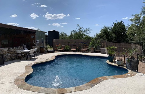 Even though there are six cabins here, they're positioned so you'll have a peaceful and private view of the meadow on the 20-acre property, and not your neighbors. One of the many unique features of this Hill Country hideaway is the sense of privacy, in tandem with the huge pavilion, where you can meet and hang out with new-found friends. The seasonal Red Bluff Creek bubbles quietly through the grounds, so if you're in a quiet mood, you're set-and if you're feeling more outgoing, the pavilion awaits!