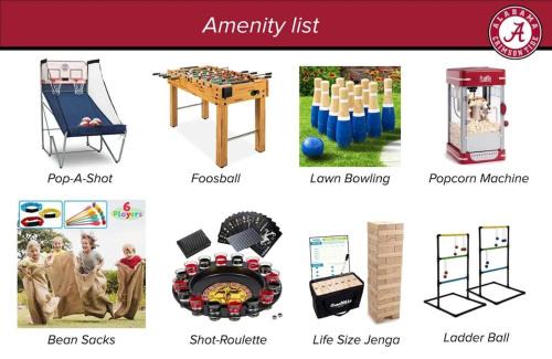 This Alabama Slammer GAME-DAY HOME 5-mile to Stadium in Tuscaloosa is well equipped and has all facilities that have been listed below. Please note that these details were shared to us by booking.com for the listed “Alabama Slammer GAME-DAY HOME 5-mile to Stadium”. We solely rely on their shared details and are regarded as “accurate”. If you have any concerns about the information or accuracy describing this House, please let us know.