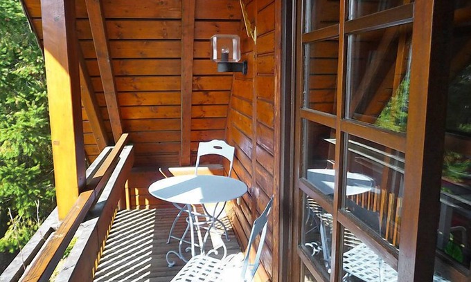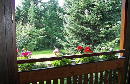 2-room apartment 41 m2, on the upper floor. With sloping ceilings, cosy furnishings: living/dining room with satellite TV (flat screen), radio. Exit to the balcony. 1 double bedroom. Open kitchen (2 induction hot plates, electric coffee machine). Shower/WC. Balcony furniture. Beautiful view of the garden. Please note: non-smokers only. The balcony is covered. Access to the holiday apartment by external stairs.