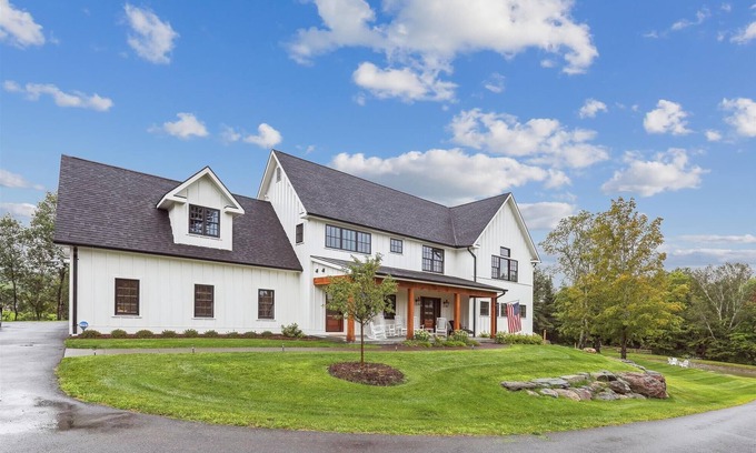 Modern farmhouse vibes meet private lodge living in this spectacular and spacious new Stowe property.