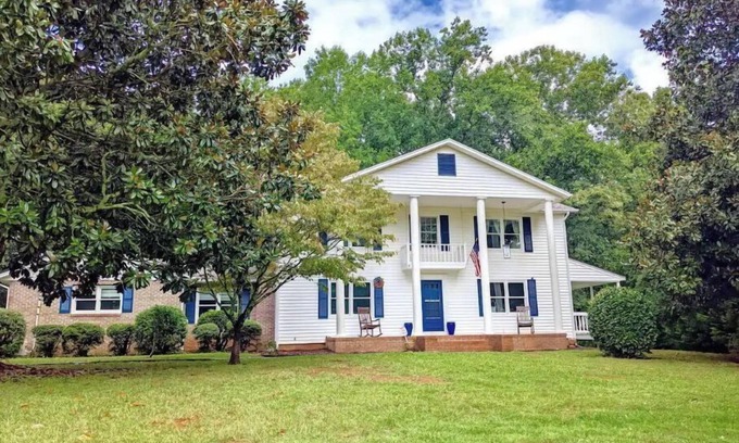 Enjoy the elegance of a by-gone era while staying in this stately home. The home has two living rooms with smart TV and fiberoptic WIFI Internet, 5 bedrooms, 3.5 bathrooms, a separate office space, and 3 acres providing plenty of room to spread out.