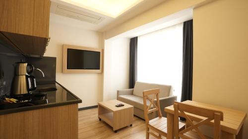 Featuring a garden and views of city, Alesta Seaside Residence is located in Fethiye, 1.1 miles from Calis Beach. The property is around 4.4 miles from Fethiye Marina, 4.4 miles from Ece Saray Marina and 17 miles from Butterfly Valley. The property provides a 24-hour front desk, airport transportation, a shared lounge and free WiFi throughout the property. Guest rooms are equipped with air conditioning, a flat-screen TV with satellite channels, an electric tea pot, a shower, free toiletries and a closet. All rooms include a safety deposit box, while certain rooms include a terrace. At the hotel each room comes with bed linen and towels. Alesta Seaside Residence offers a buffet or continental breakfast. Saklikent National Park is 28 miles from the accommodation, while Saklikent is 30 miles away. The nearest airport is Dalaman Airport, 29 miles from Alesta Seaside Residence.