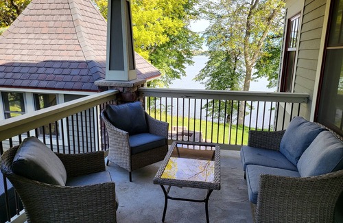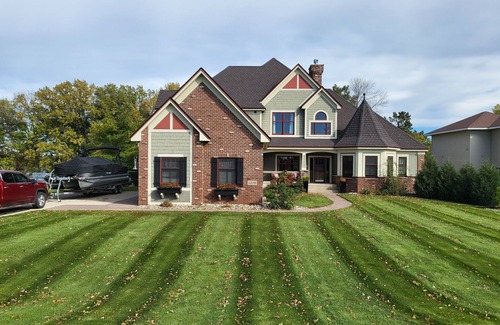 Discover the perfect family lake retreat. It is a wonderful welcoming place to make memories with family and friends. Lots of fun guest spaces! Maple Lake is a full recreational, 830 acre, spring fed lake. Great fishing, hard sand bottom, super clear (20' clarity). This spacious home has 6,500 square feet. It is a craftsman home; tastefully decorated and equipped for your stay. There are six large bedrooms, the home has 4.5 baths. More than enough room for multiple families. Your family and friends will enjoy spending time together. The home has two big family rooms with fireplaces. You'll have fun playing pool/billiards, you can add a ping pong top to the pool table if that's more fun for you. The lower level bar area has two TV's, a dishwasher, ice maker, and beverage coolers. When it's time to wind down the movie room is a comfortable place to enjoy a show. There are game chests packed with games for hours of family/friend fun. There is a fooseball table, game/dining tables, piano, sauna, exercise room, hot tub, screened in patio, theater room, deck and porch areas. On the main level you'll be impressed with the chef's kitchen with two adjacent dining rooms- so large groups can share meals together. You can find peace and relaxation right off of the kitchen through the french doors in the beautiful sitting room - it's facing the lake with vaulted ceilings. The craftsmanship in this home is amazing!! The outdoor lake facing gazebo is an artists dream (bring your own supplies), kids play area, or quite hangout. Maple Lake is so beautiful; there is 100 feet of usable lakeshore, we've saved a dock space for your boat, the dock has seating, and steps into the water play area. You can swim and relax on the floating raft. Or maybe you would enjoy using the paddle board and kayaks. There is a fire ring with lakeside chairs. The garage has lots of yard games for your enjoyment.