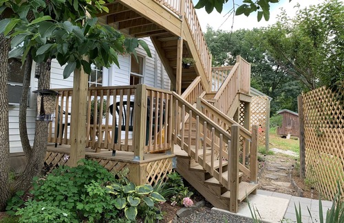 Each unit is self-contained with a deck and cozy. Visitors have enjoyed the fact that the property is in a rural, forested setting, yet only ten minutes away from main Street in Hudson. Shopping areas are only five minutes away with super markets and restaurants. Fully equipped kitchen and access to seasonal vegetable and fruit garden in season. Close to Windham and Catamont ski resorts. Located on Claverack Creek with picnic and BBQ area included.