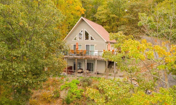 All Decked Out: Beautiful Chalet-style Seneca Lake Home! is located in Burdett. All Decked Out: Beautiful Chalet-style Seneca Lake Home! provides accommodation, featuring Balcony/Terrace, Fireplace/Heating, Barbecue/Outdoor Cooking, among other amenities. This House features Balcony/Terrace, Fireplace/Heating, Barbecue/Outdoor Cooking, to make your stay a comfortable one.