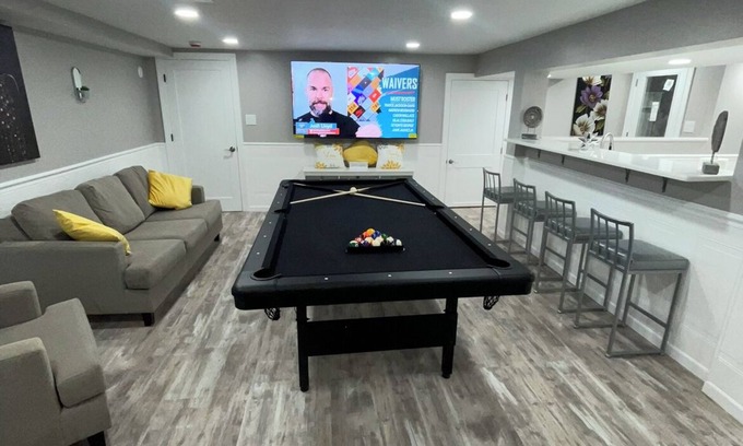 This stylish and spacious place to stay is perfect for a home away from home! Private entry! Everything you need is here! There’s a tv in the bedroom and living room. There’s a pool table if you want to play a fun game! If you need space to study or do some work, there’s a desk area. Personal washer & dryer is also available in the unit.