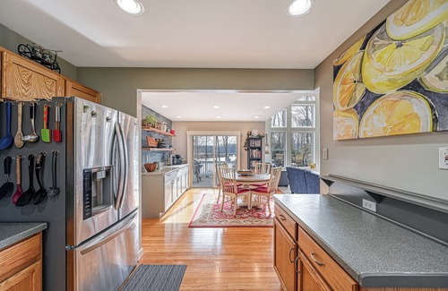 It offers many different areas to unwind and relax no matter what the season is. The front porch, back deck, pergola, beach, boathouse and dock will be yours to enjoy. The house comes with 4 kayaks, 2 SUP's, a paddle boat, lifejackets along with blow-up floaties. If you have your own motorized boat you can bring it with you and launch from the common area and dock it on the property. Bring your fishing pole and fish right off the dock or take out a kayak and fish. Enjoy every season all year round with warm water, 2 firepits. This house also comes with amenities for your enjoyment. Pingpong, cornhole, darts and lots of board games. This property is managed by the owners and they take great pride in making sure their house is well maintained and that their guests have the best time possible.