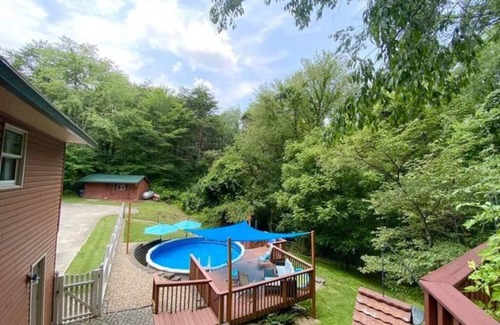 All Year Fun! Pool w Deck, Hot Tub, Foosball, Air Hockey, Nature, Pet Friendly! | Cabin in Logan