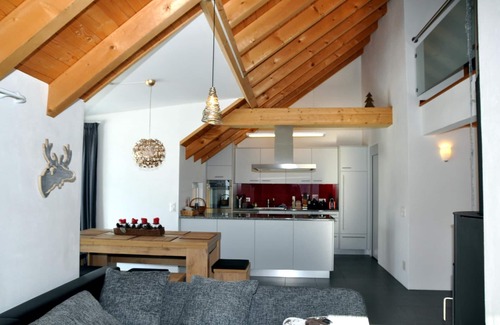 This is a beautiful attic flat - converted from the hay barn of an Engadine house - in the picturesque "Scuol-sura" part of the village. Extremely central, sunny and quiet residential area. Only a few steps to the local/ski bus stop and the shops.