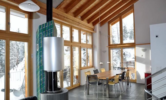 From the fully glazed south-facing façade you can enjoy a breathtaking, unobstructed panoramic view of the mountains of the Lower Engadine.