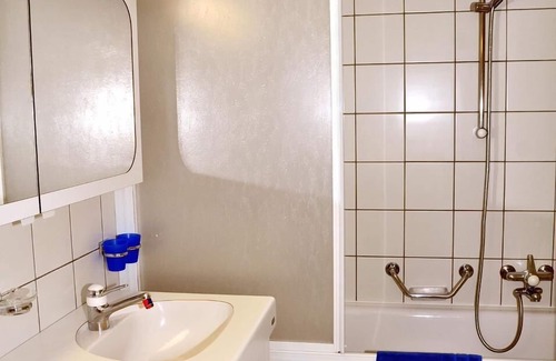 Spacious living room with exposed wooden ceiling construction. Functionally equipped kitchen with dishwasher. Two double bedrooms. Bathroom/WC/double washbasin. Small seating area at the end of the outside staircase at the entrance to the flat. Flatscreen TV with Sunrise, free WLAN, Nespresso coffee machine.