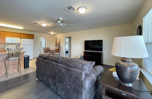 This duplex has 2 bedrooms and 1 bathroom located in a safe and peaceful neighborhood. Both bedrooms have queen beds. Bathroom is located in-between bedrooms. Central Heat and Air. All utilities available with wifi and two free parking spaces. Absolutely no wasted space in this simple design.
