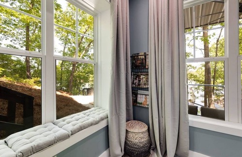 As you enter the open kitchen/ living/ dining area you'll immediately notice all of the oversized windows with immediate views of the lake. As you walk out the French doors you'll be on the top level deck with that hosts a swinging bed, and outdoor dining table plus amazing views of open year round water and our private dock. (Yes, you can store your boat here, if needed) Down at the dock we've provided extra seating, 2 kayaks (*use at your own risk), and a 6x18 ft Lilly pad that is fun for the entire family to use. There is a 1/2 bathroom on this main level, laundry room and also a master bedroom with private full bathroom. Downstairs there are 2 more master bedrooms (one with an additional bunk bed in the walk in closet) with private full bathrooms and a another semi private bedroom with a double bunk bed with a pull out trundle. Each bedroom has a 50 inch smart that we have on guest mode so you can use any of your own apps and have provided cable. We have Starlink internet that works amazing for work or streaming. In each room in our home you will have incredible lake views and we promise you will be so comfortable you won't want to go home.