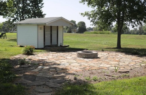 Cozy house on 2 acres...in a quiet neighborhood.3bedroom ,1 1/2 bath, fully equipped kitchen and spacious dining room area with A/C, sitting room with smart TV and free spark light Wi-Fi , and washer an dryer available.The back deck has a porch swing and also a small play set in the backyard for the kids. Patio in the back yard with fire pit to roast s'mores or enjoy the evening with a crackling fire,hot cocoa, and the starry, moon lite sky. A grill is in the garage if you'd rather bbq . A large drive-way for all your vehicle or trailer needs. We also have a couple security cameras located outside .
