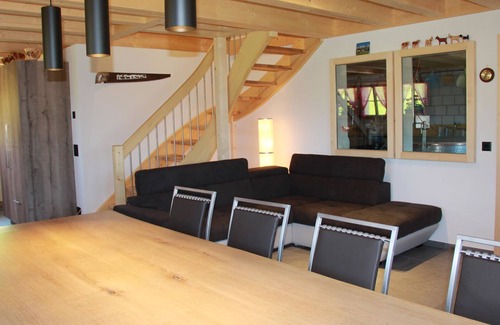 Beautiful 5 room holiday apartment with living/dining room, dining table for 10 persons, large sofa, SAT-TV, modern equipped kitchen with dishwasher. It has four bedrooms, each bedroom has a double bed and in two rooms there is a small gallery with one single bed each. There is a bathroom with shower partition and WC. The apartment is only rented in winter. Public transport included in the Simmental and Saanenland with the SIMMENTAL CARD: Overnight guests in the Lenk-Simmental holiday region travel free of charge on public transport for excursions with a valid guest card.