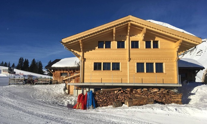 132 m2. More information by the provider: The detached house is located 1800 meters above sea level and directly on the ski slopes of Lenk-Betelberg. Quiet and idyllic location with great views. The house was newly built in 2018/19 and is used as an alp hut in summer. A view into the alp cheese dairy is granted to you also in the winter directly from the dwelling.The holiday apartment is suitable for people who want to enjoy the peace and quiet in the evening and who want to spoil themselves at home. The property is particularly suitable for guests who want to use their stay mainly for skiing, winter hiking or cross-country skiing. It is also possible to walk up to the Leiterli in the evening (30 minutes) and enjoy dinner there. The Haslerbar, which is closed in the evening, is right next to the apartment. The Haslerbar is run by the owner of the house, who is happy to answer your questions. With the guest card (Simmentalcard)you can use the buses in Lenk free of charge. Turn right at the roundabout in Lenk and follow the signs to the station of the Lenk-Betelberg cable car. The car can be parked free of charge in the parking garage of the Betelbergbahn. The journey to the holiday apartment is then by gondola to the Leiterli mountain station. Then ski, snowboard or walk (30 minutes) on the piste or along the winter hiking trail down to the Haslerbar Operating times of the mountain railways. Luggage transport or transport if the mountain railways are not operating is possible on request from the owner.