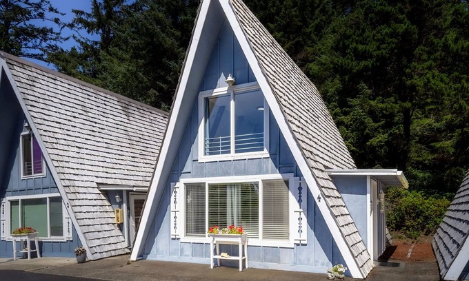 This charming loft is part of the idyllic Alpine Chalets community on the beautiful Central Oregon Coast. Perfect for family getaways or friends traveling together, this adorable Otter Rock vacation home is right on Beverly Beach—a long stretch of sand that runs all the way south to Yaquina Head Lighthouse! And from the living room of this A-frame-style chalet, you'll even have a view of the ocean!